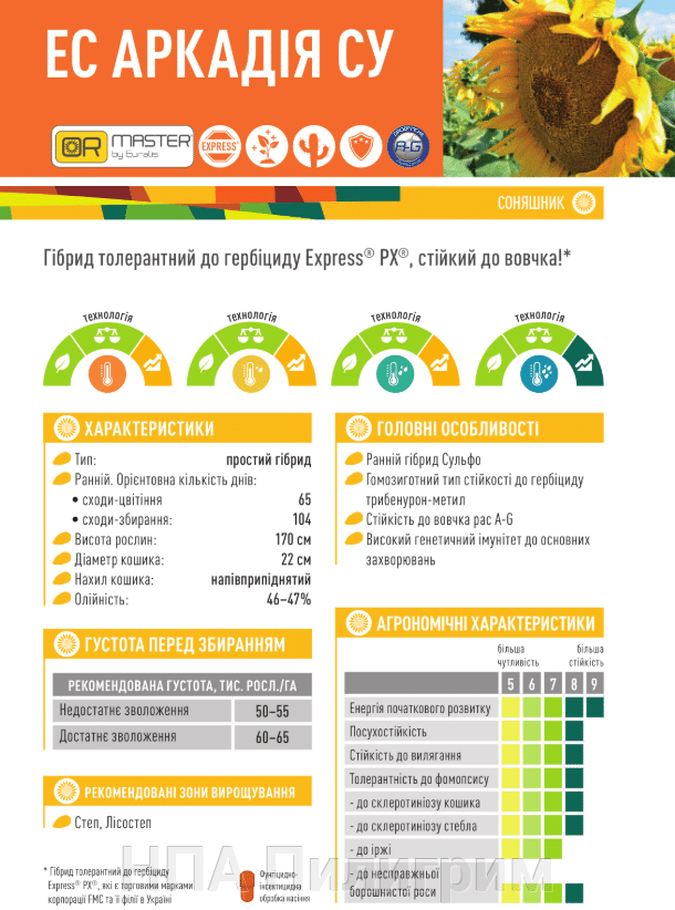 Гібрид толерантний до гербіциду групи Express PX, стійкий до Вовчка (G+)!