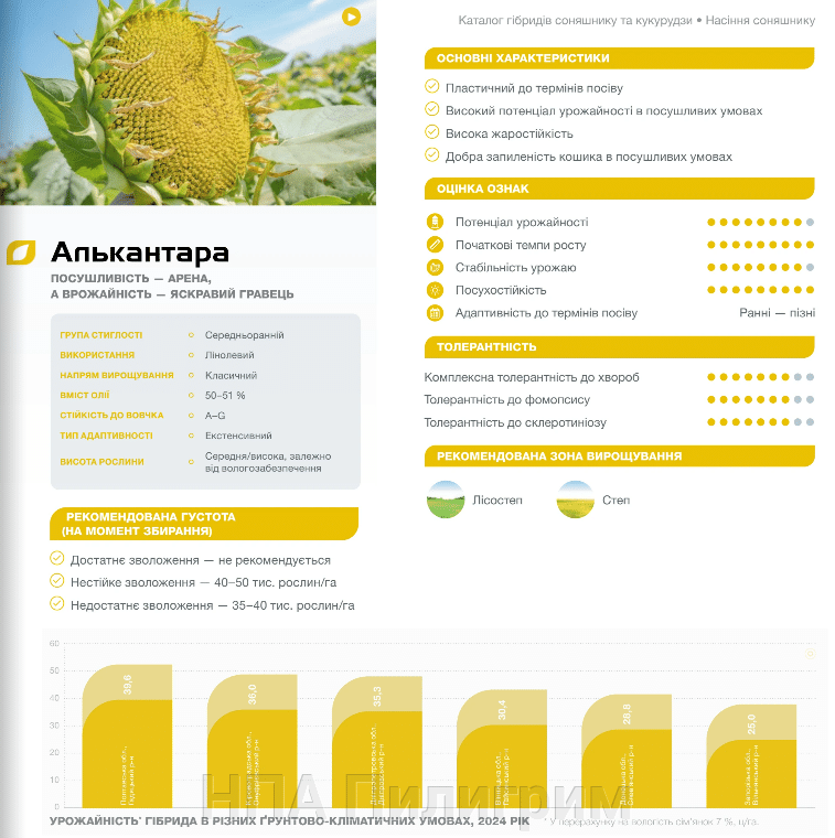 Насіння соняшнику «Алькантара» Максимальна посухостійкість