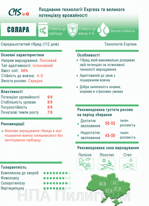 Насіння соняшнику «Solara». Максимальна олійність. Генетіка Чілійської компанії «CIS». 50 гр Гранстар. 7+ Вовчок.