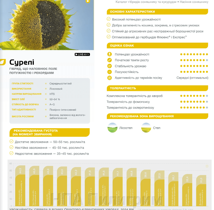 Насіння соняшнику «Сурелі HTS». Максимальна врожайність та Олійність. Стійкий до 50 гр гранстар