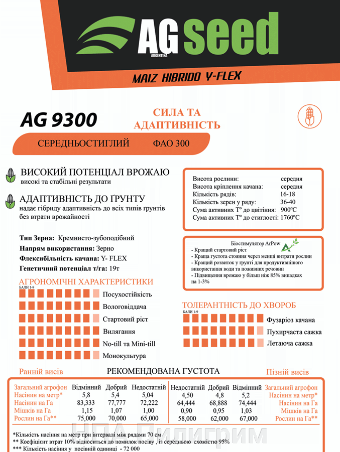 Насіння кукурудзи «AG 9300». ФАО320. AGSeed. Y-FLEX. Для різних кліматичних зон