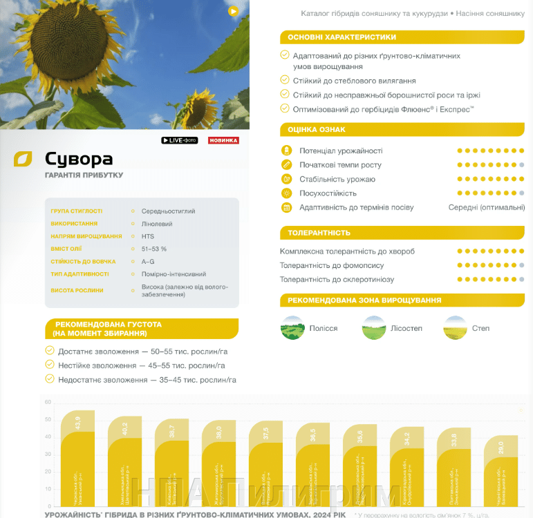 Насіння соняшнику «Сувора HTS». Адаптован пІд різні погодно - грунтові умови