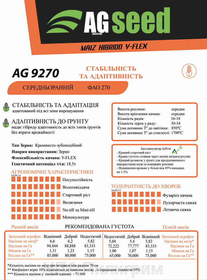 Насіння кукурудзи «AG 9270». ФАО 270. AGseed. Y-XLEX гібрид. Для різних кліматичних зон