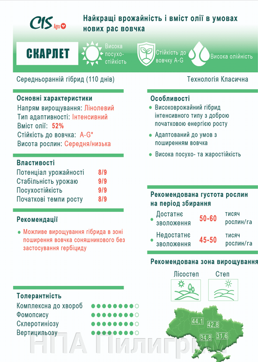 Насіння соняшнику «Скарлет» Максимальна врожайність. Генетіка Чілійської компанії «CIS». 50гр Гранстар. 7+ Вовчок